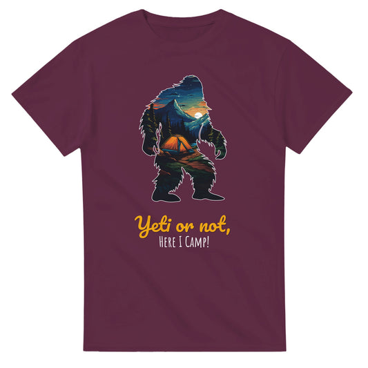 Yeti or Not, Here I Camp Funny T-Shirt – Starry Night Graphic Tee