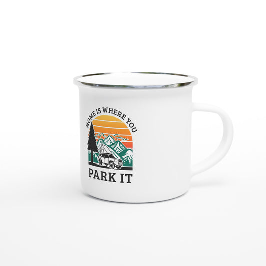 Retro Car Camping Enamel Mug – 12oz Lightweight Travel Cup with Mountain Graphic